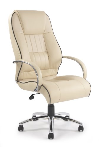 This chair is well shaped and features soft cream leather. The back of the chair is high and incorporates a headrest.Ideal for the executive, price is for 1 chair